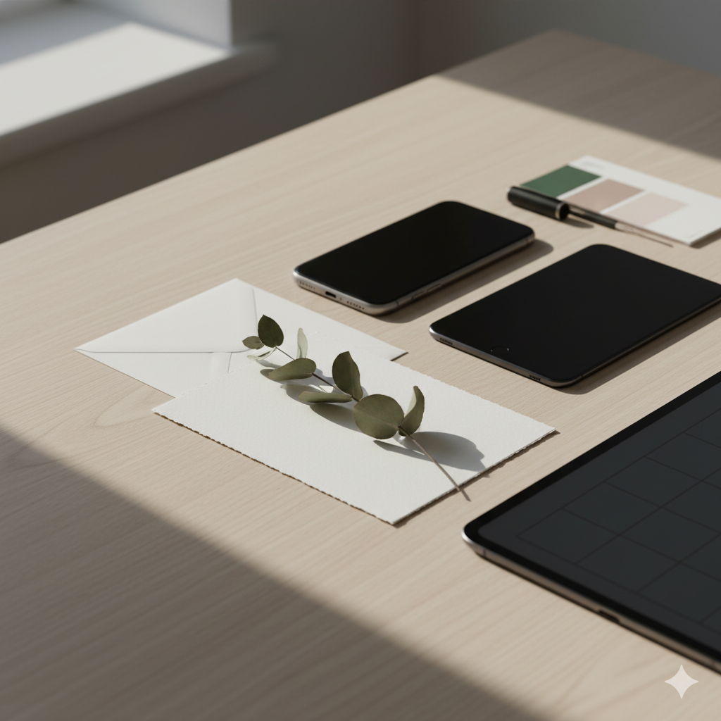 Jika desain undangan bernuansa minimalis, pilih mockup yang simpel agar tidak mengalihkan perhatian. -