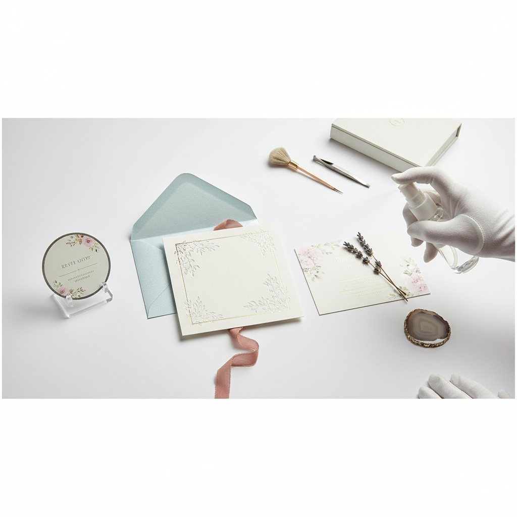 Hindari penggunaan tisu basah atau cairan pembersih karena bisa merusak lapisan tinta atau membuat kertas bergelombang. Jika undangan terkena noda ringan, kamu bisa menggunakan penghapus putih khusus dokumen secara perlahan (sumber: Art Paper Maintenance Guide, 2024).