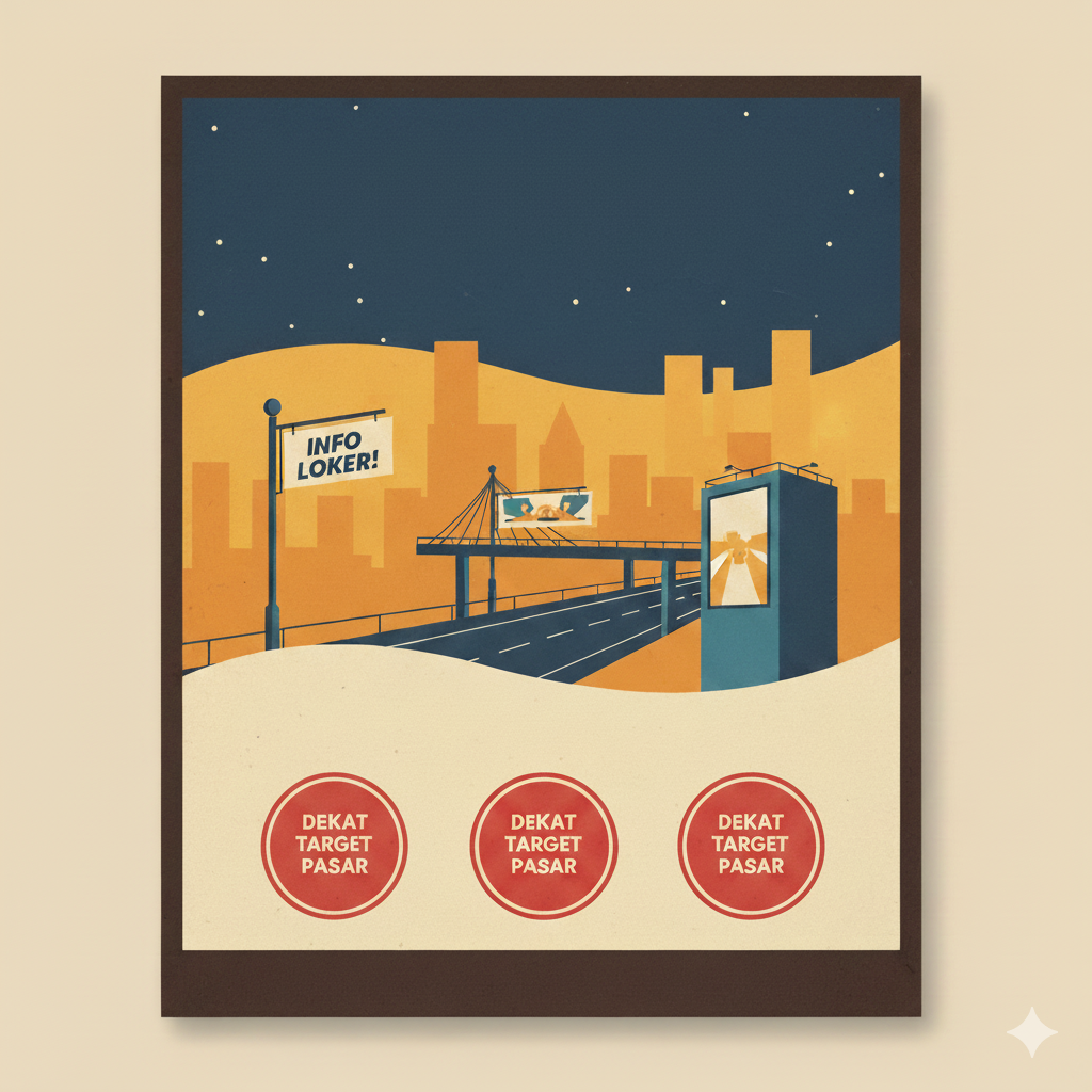 Menurut Katadata (2021), strategi pemasangan media luar ruang yang tepat dapat meningkatkan efektivitas promosi hingga dua kali lipat dibandingkan pemasangan di lokasi acak.