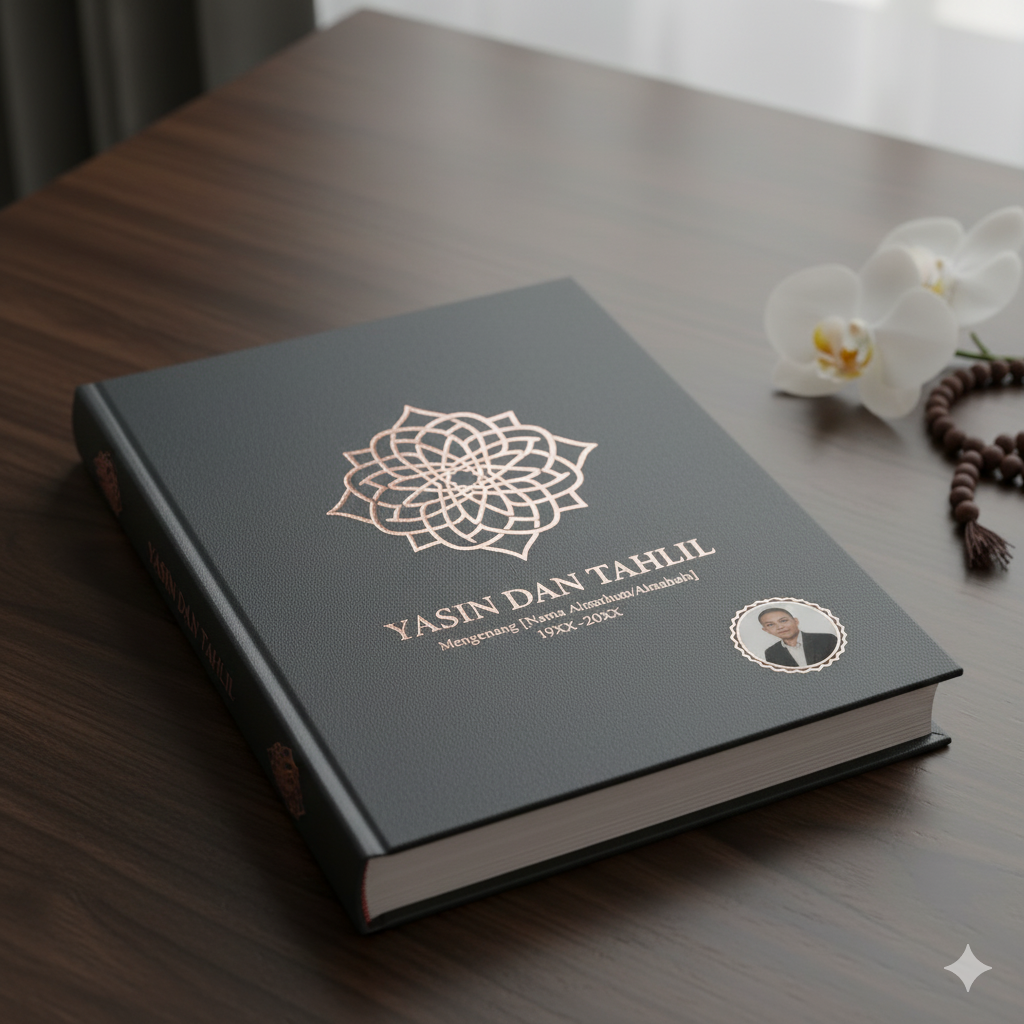 Desain cover buku Yasin minimalis adalah wujud penghormatan yang sederhana namun penuh makna. Dengan perpaduan warna lembut, font elegan, dan finishing mewah, Anda bisa mendapatkan hasil cetak yang tidak hanya indah dilihat, tapi juga mencerminkan nilai spiritual dan rasa hormat kepada yang telah berpulang.
