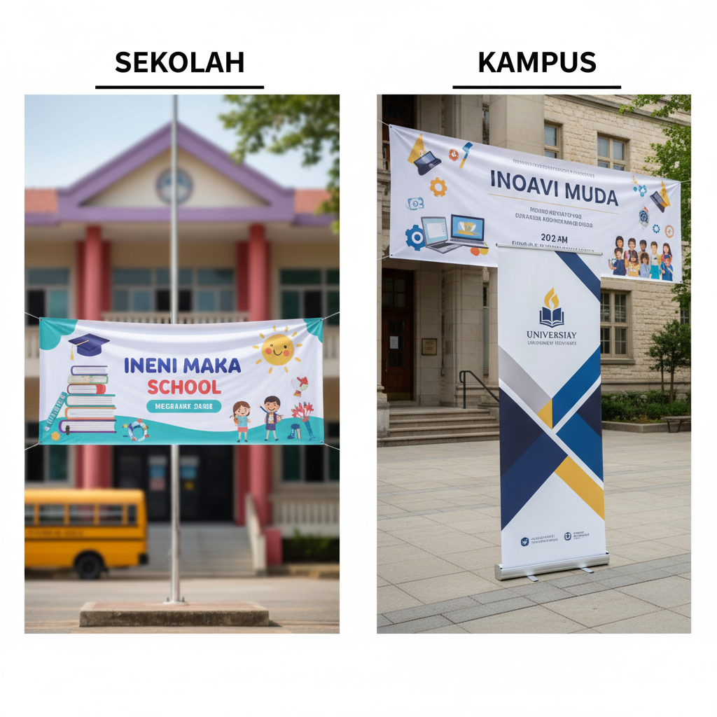 Dengan desain spanduk yang tepat, acara sekolah maupun kampus tidak hanya ramai peserta, tetapi juga memberikan citra positif bagi lembaga pendidikan.