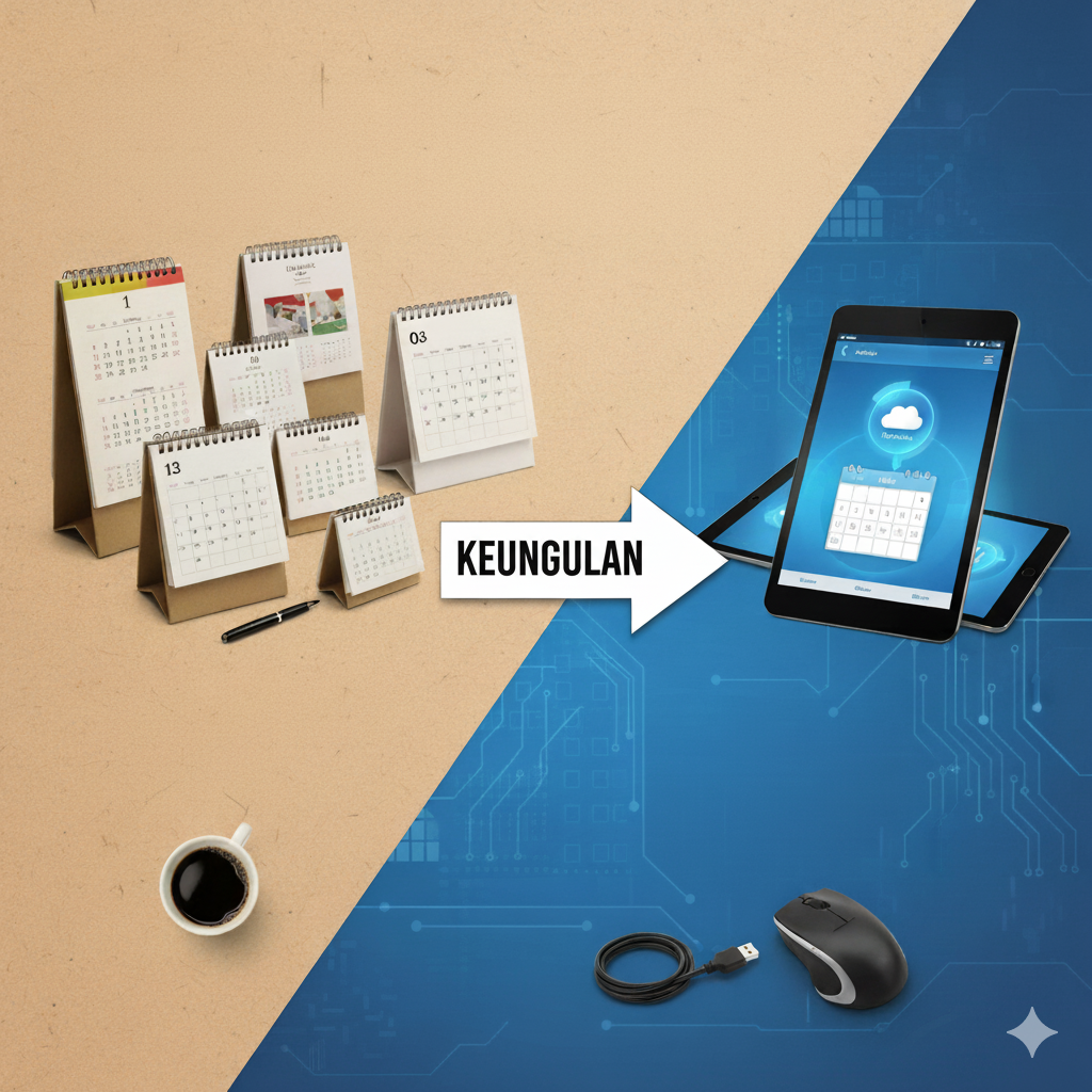 Kalender digital memang canggih, tapi sangat tergantung pada perangkat, aplikasi, dan jaringan internet. Jika ada gangguan, informasi bisa hilang atau sulit diakses. Kalender cetak tidak memerlukan listrik, baterai, atau koneksi internet.