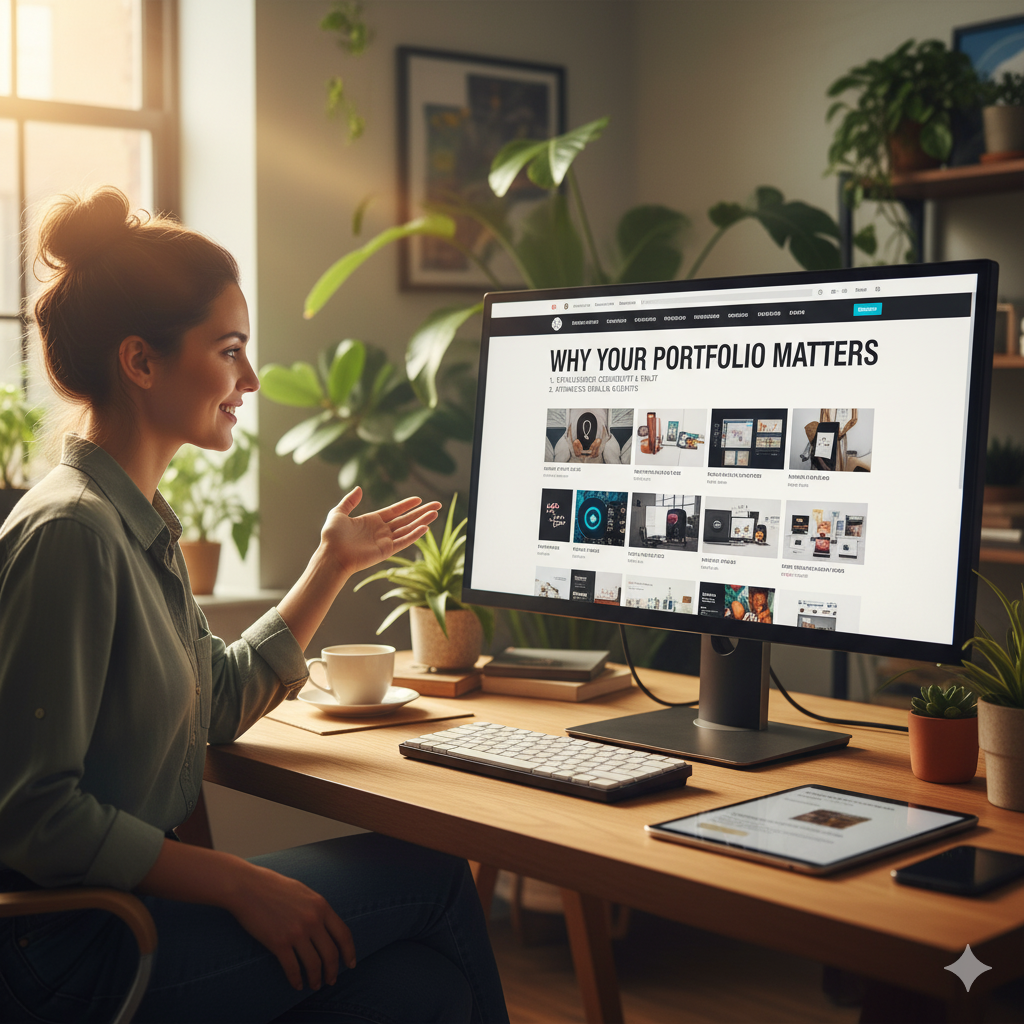 Menampilkan portofolio desain di website bukan sekadar pajangan hasil kerja, melainkan strategi penting untuk: