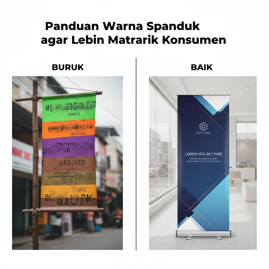 Pemilihan warna yang tepat membuat pesan spanduk lebih cepat ditangkap audiens. Jika salah memilih, konsumen bisa merasa bingung atau bahkan tidak tertarik.
