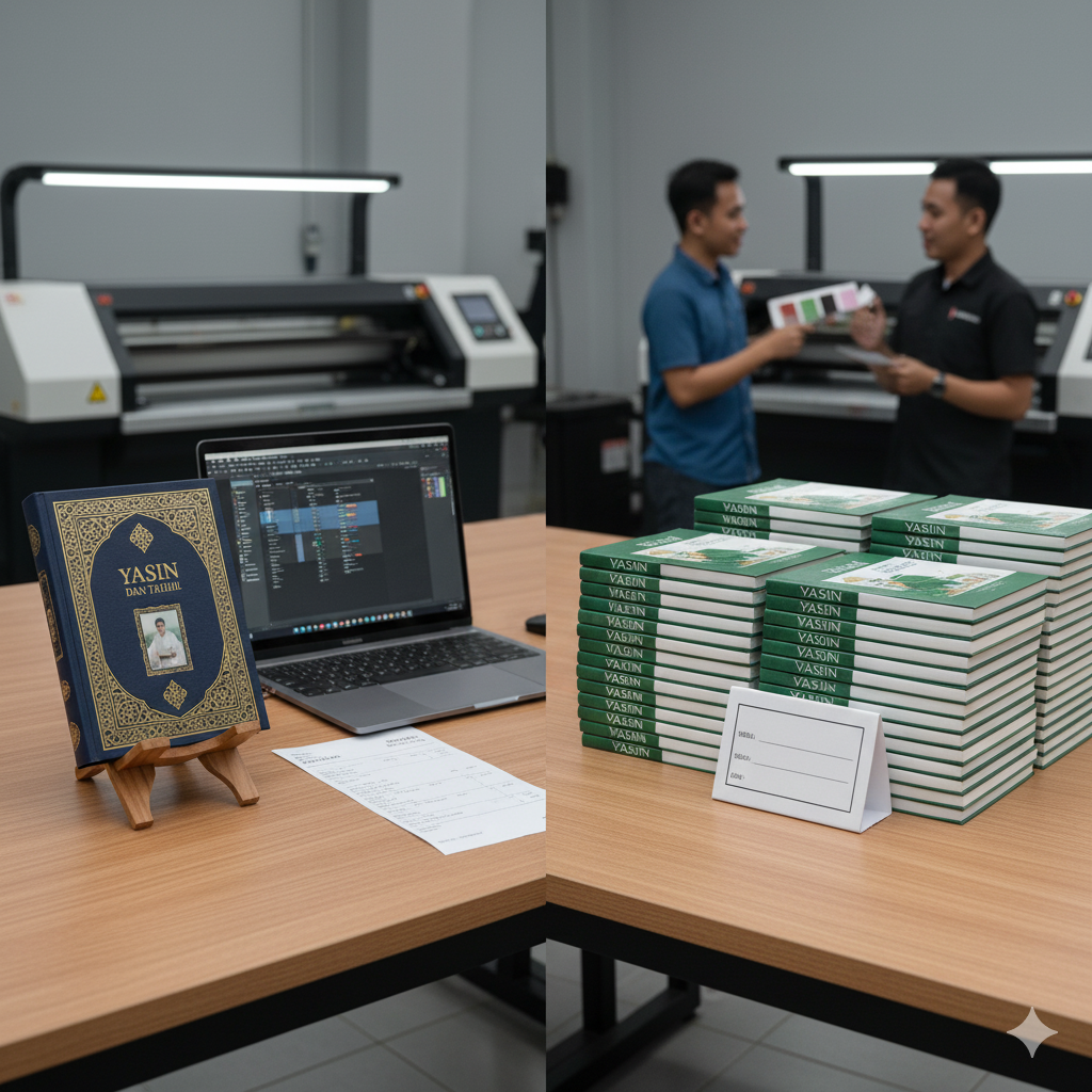 | Buku Yasin Custom (Cover Hard) | Rp 25.000 – Rp 60.000 | 20 pcs | 5–10 hari kerja |