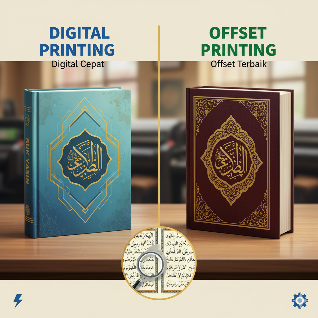 Baik digital printing maupun offset printing sama-sama memiliki tempat penting dalam dunia percetakan buku Yasin. Pilihan terbaik bergantung pada tujuan, jumlah, anggaran, dan waktu produksi.
