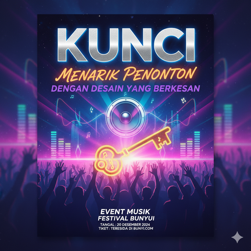 Poster event musik adalah kunci penting untuk menarik penonton. Dengan desain yang berkesanmulai dari pemilihan warna, tipografi, gambar, hingga branding—poster dapat menciptakan rasa penasaran dan antusiasme calon audiens.