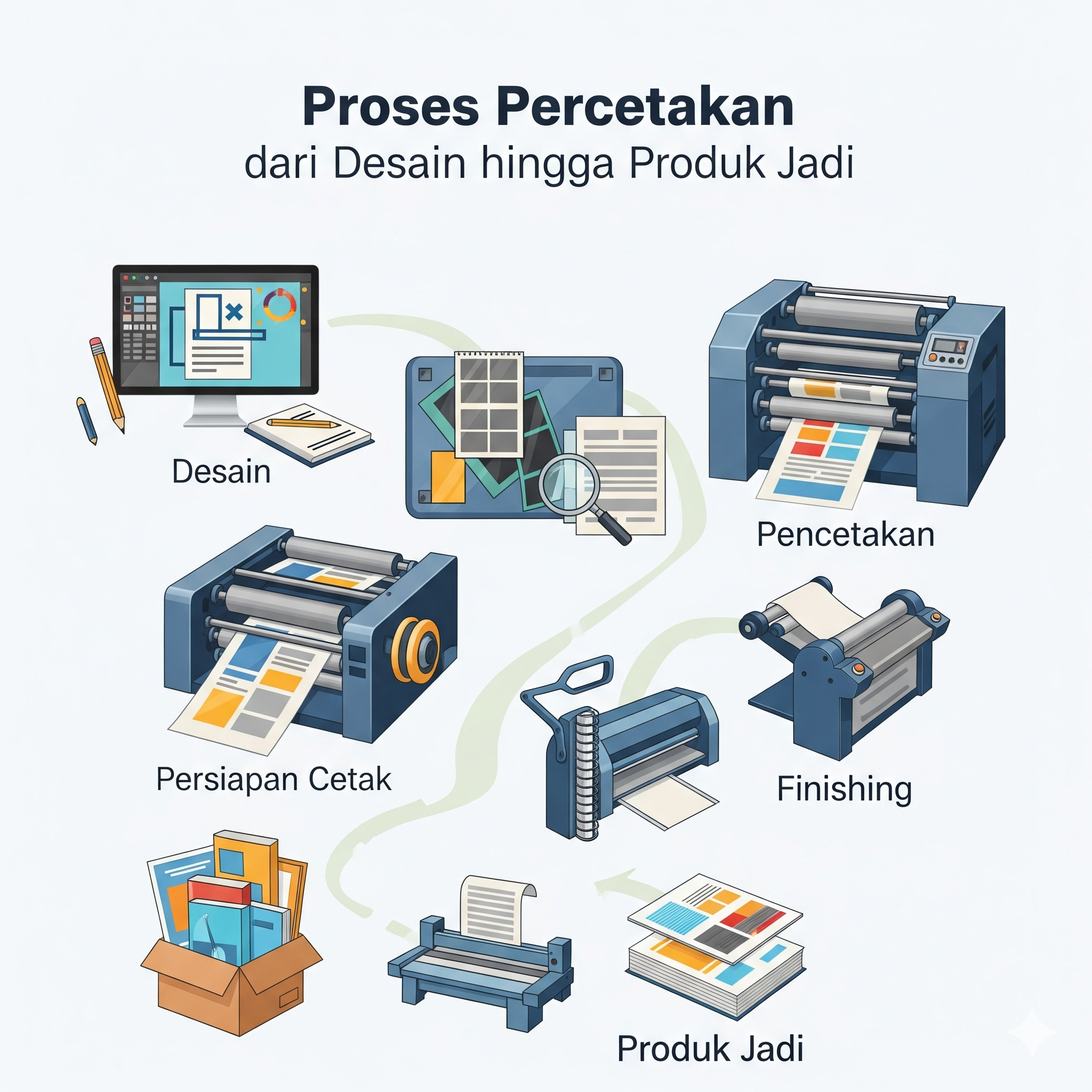 Proses percetakan dari desain hingga produk jadi bukanlah hal yang sederhana. Ada banyak tahap yang dilalui: