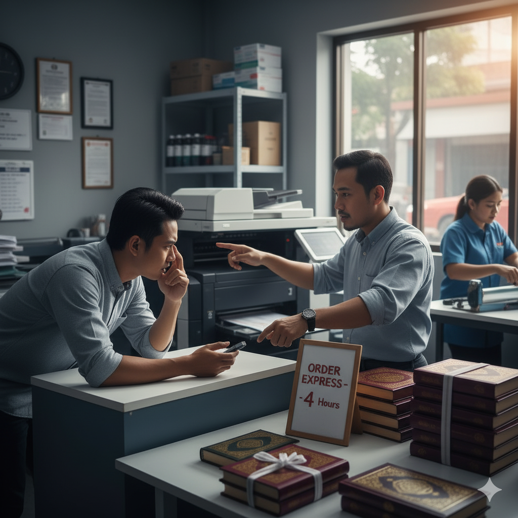 Menurut Kompas Tekno (2023), percetakan digital lokal kini menjadi solusi unggulan karena efisiensi waktu dan fleksibilitas biaya, terutama untuk kebutuhan mendesak seperti acara keagamaan.