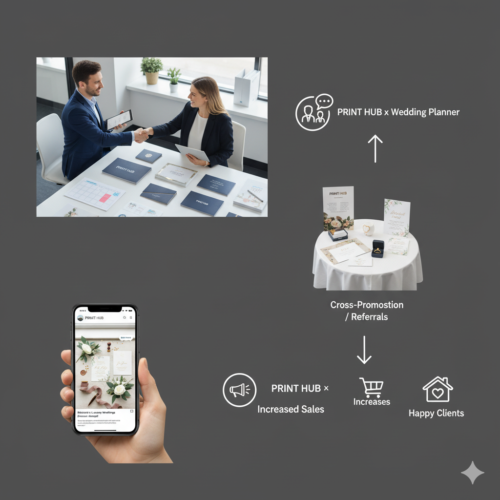Misalnya, jika bisnis percetakan Anda fokus pada desain undangan elegan dan premium, maka pilihlah vendor pernikahan yang juga melayani segmen serupa — seperti wedding organizer kelas menengah ke atas atau fotografer profesional yang sering menangani acara besar.