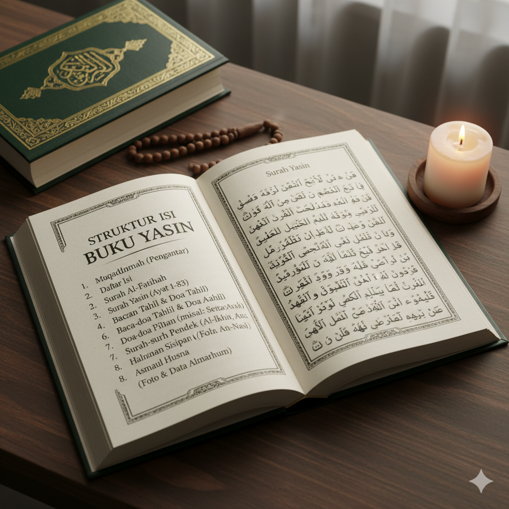 Struktur isi Buku Yasin yang umum digunakan pada dasarnya terdiri dari bagian pembuka, Surah Yasin, doa setelah Yasin, tahlil, doa arwah, hingga penutup. Dengan menyusun urutan ini secara rapi, Buku Yasin akan menjadi lebih bermakna, mudah dibaca, dan enak dipandang.