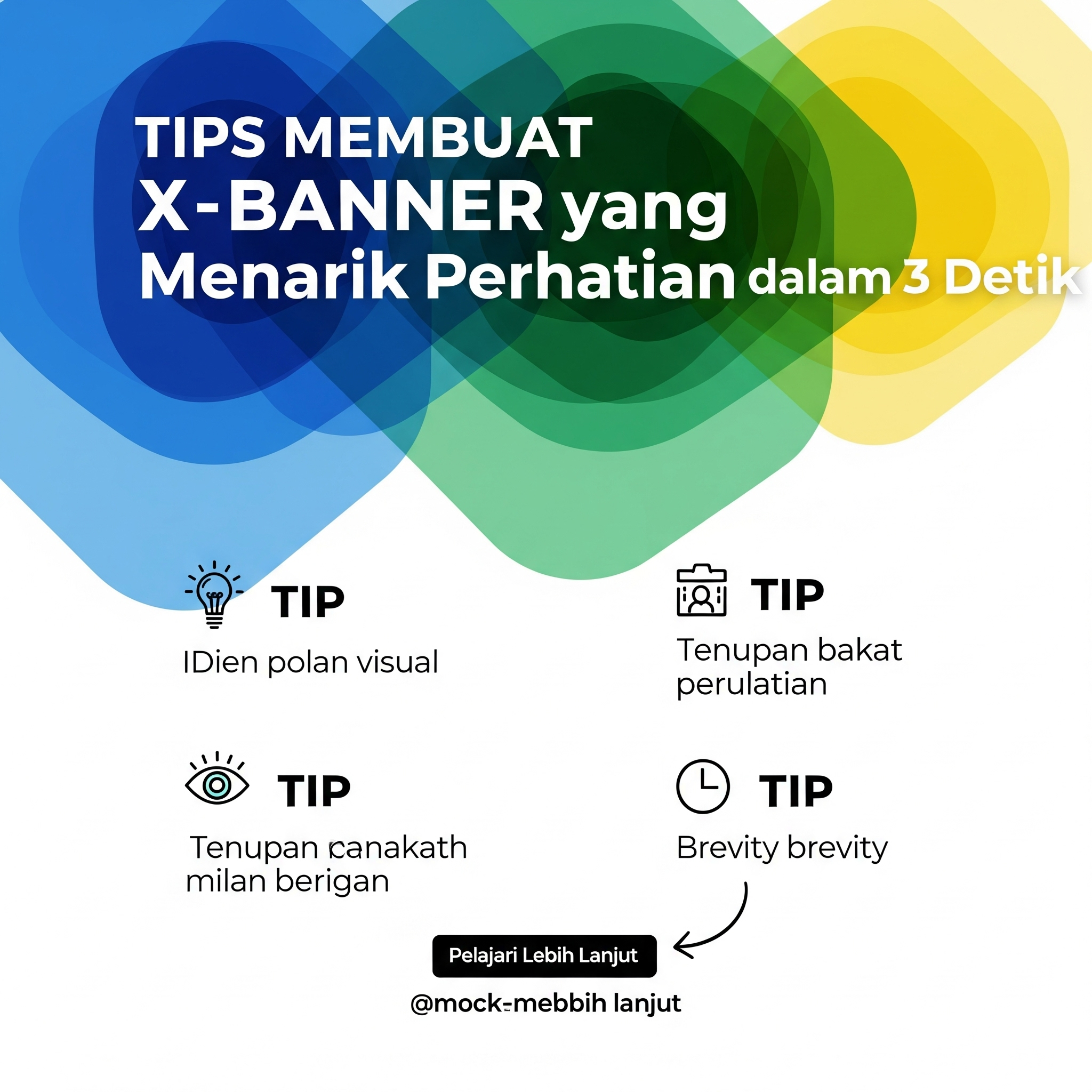 X-Banner adalah media promosi sederhana namun sangat efektif jika dibuat dengan strategi desain yang tepat. Kuncinya adalah menarik perhatian dalam 3 detik pertama, yaitu dengan: