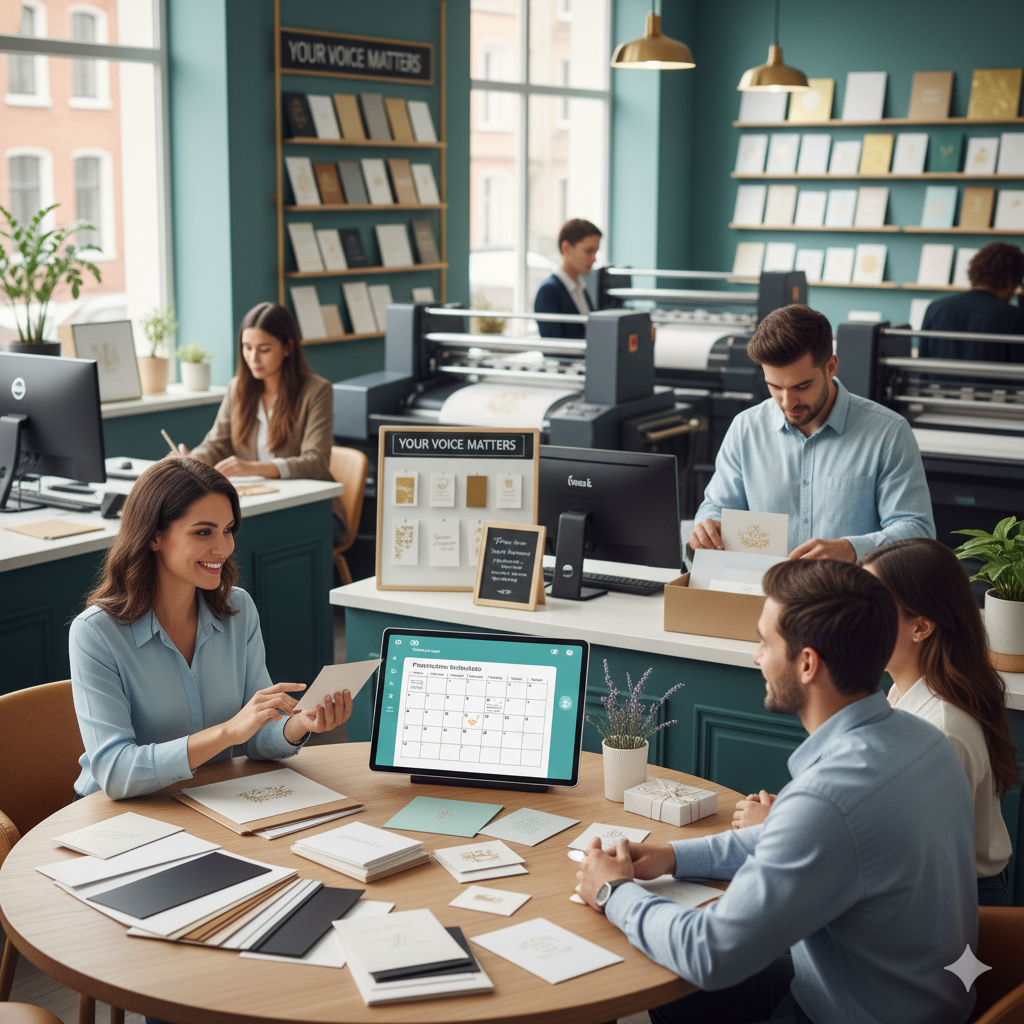 Gunakan juga form konsultasi singkat baik secara online maupun di toko untuk mengumpulkan informasi dari pelanggan. Dengan begitu, Anda bisa memberikan saran desain dan jenis kertas yang paling sesuai, sehingga pelanggan merasa diperhatikan dan diprioritaskan.