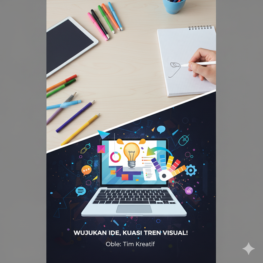 Gambar mampu menyampaikan pesan lebih cepat daripada teks. Jika workshop bertema kreatif, gunakan ilustrasi atau foto yang menggambarkan aktivitas tersebut, seperti tangan yang sedang menggambar, laptop dengan software desain terbuka, atau alat seni seperti kuas dan cat.